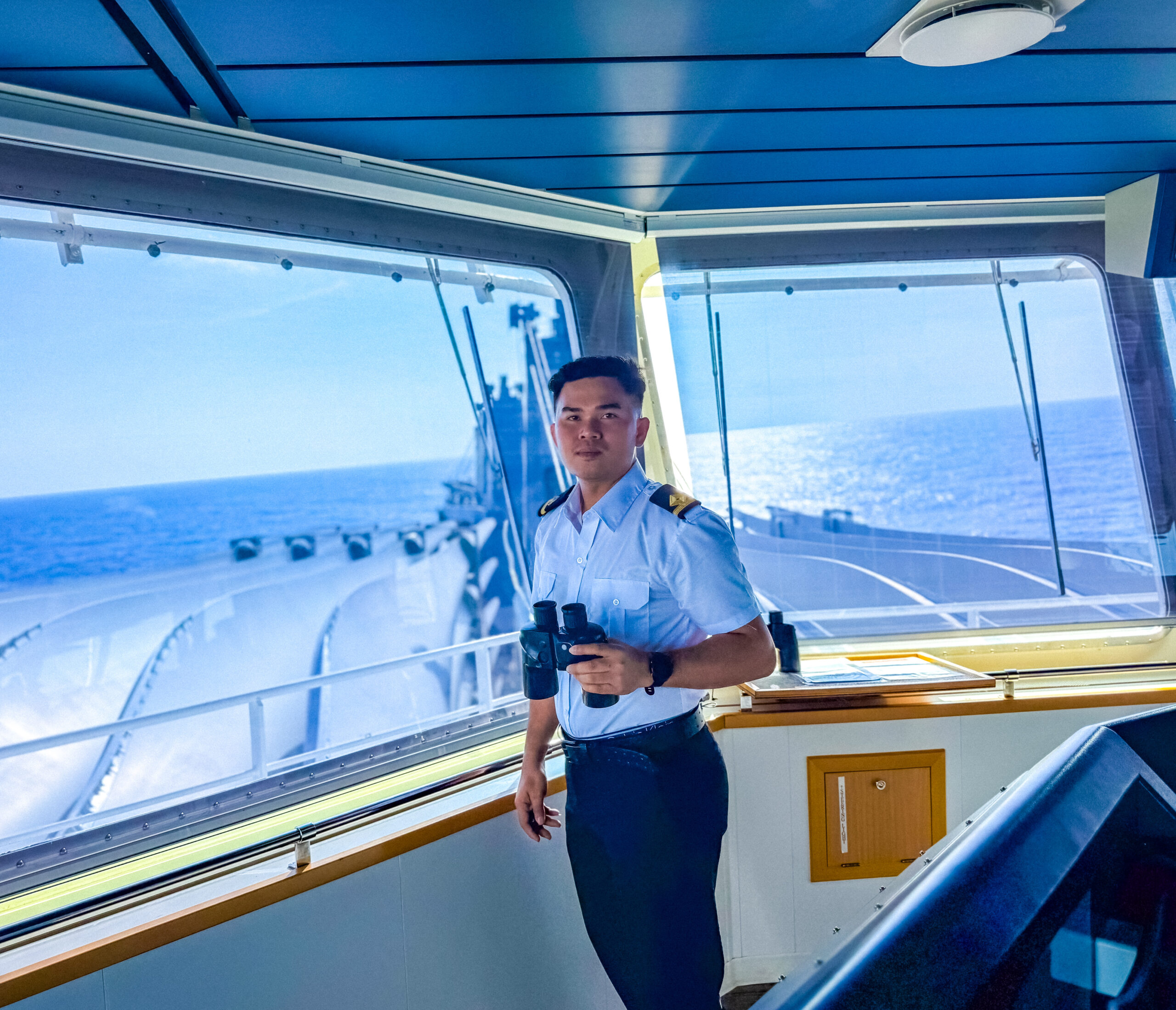Still, he’s glad he made the switch. The deck department gives him the view he craved: sunlight, fresh air, and a path to command.